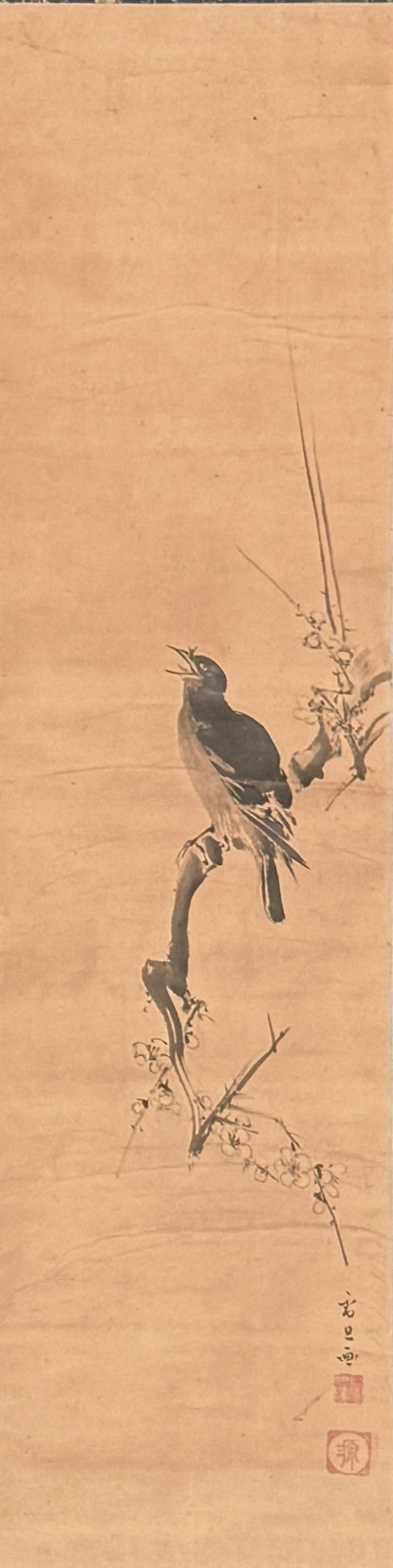 Diptychon Landschaft / Haubenmaina auf Pflaumenblüte | Hasegawa Settan (attr.) 長谷川雪旦 (伝) | 1778-1843