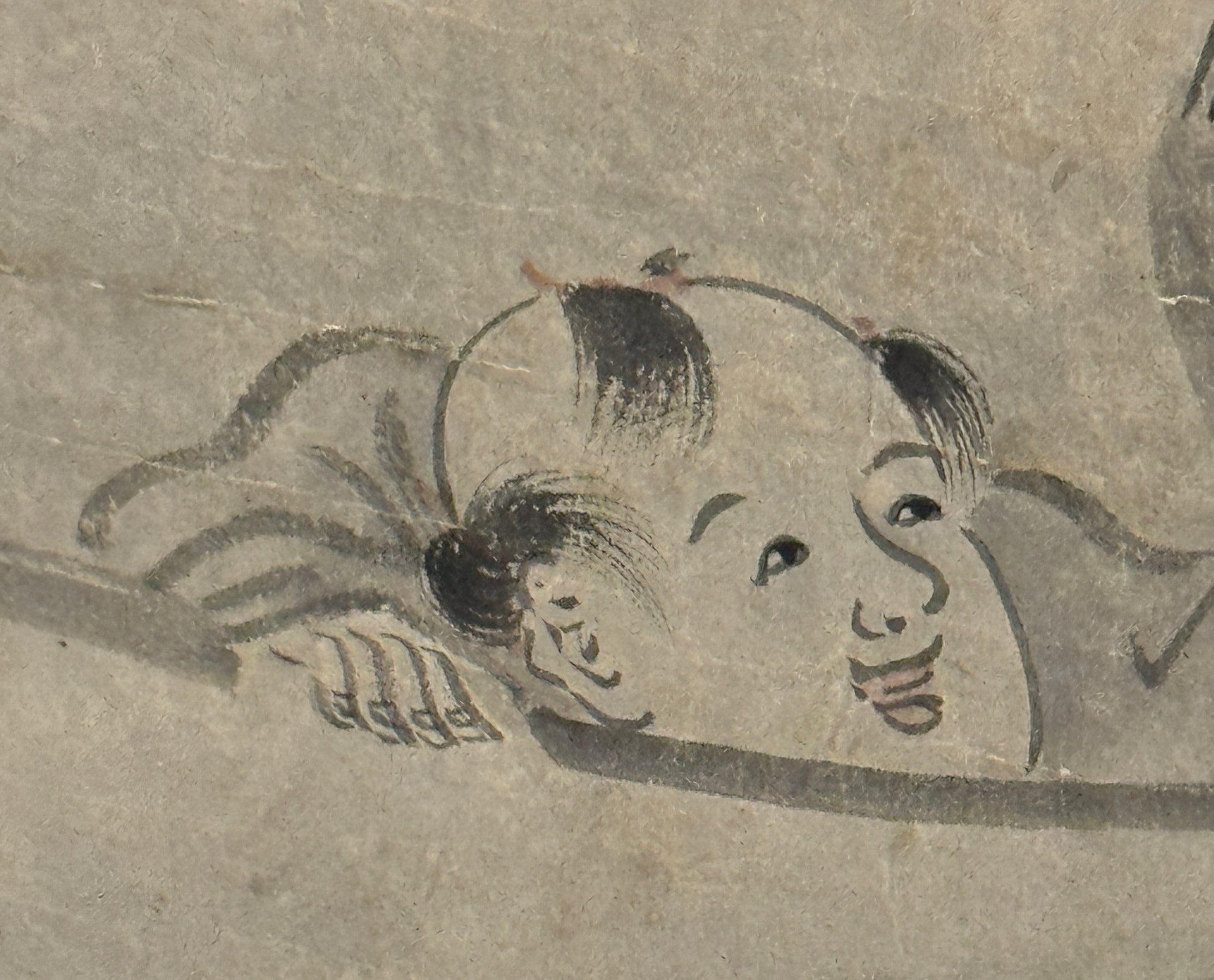 The authorship of this impressive scroll painting is difficult to ascertain due to a missing signature and two seals that cannot be identified. Researchers are constantly discovering new seals, so this assessment of the authenticity situation is not too problematic. A missing signature is also quite common at this time. What is important is that the painting is of convincing quality; it is art of the best Kanō tradition of the 17th century.