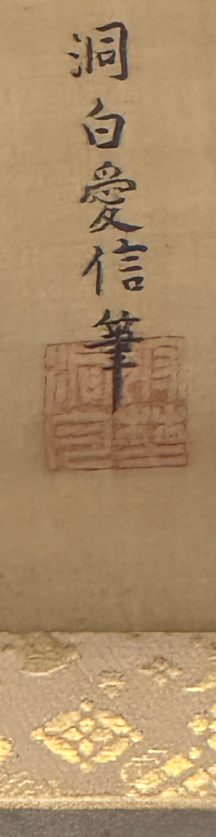 There is a bit of a problem with the name of this painter. He is known primarily as Dōhaku. But the second name is read as "Chikanobu" or with other characters 美信as "Nakanobu", "Naganobu" etc. Dōhaku was highly respected in his time because he became the head of the Surugadai studio - in the 5th generation. Studio heads were not necessarily Kanō masters in the bloodline; they had to distinguish themselves primarily through achievement.