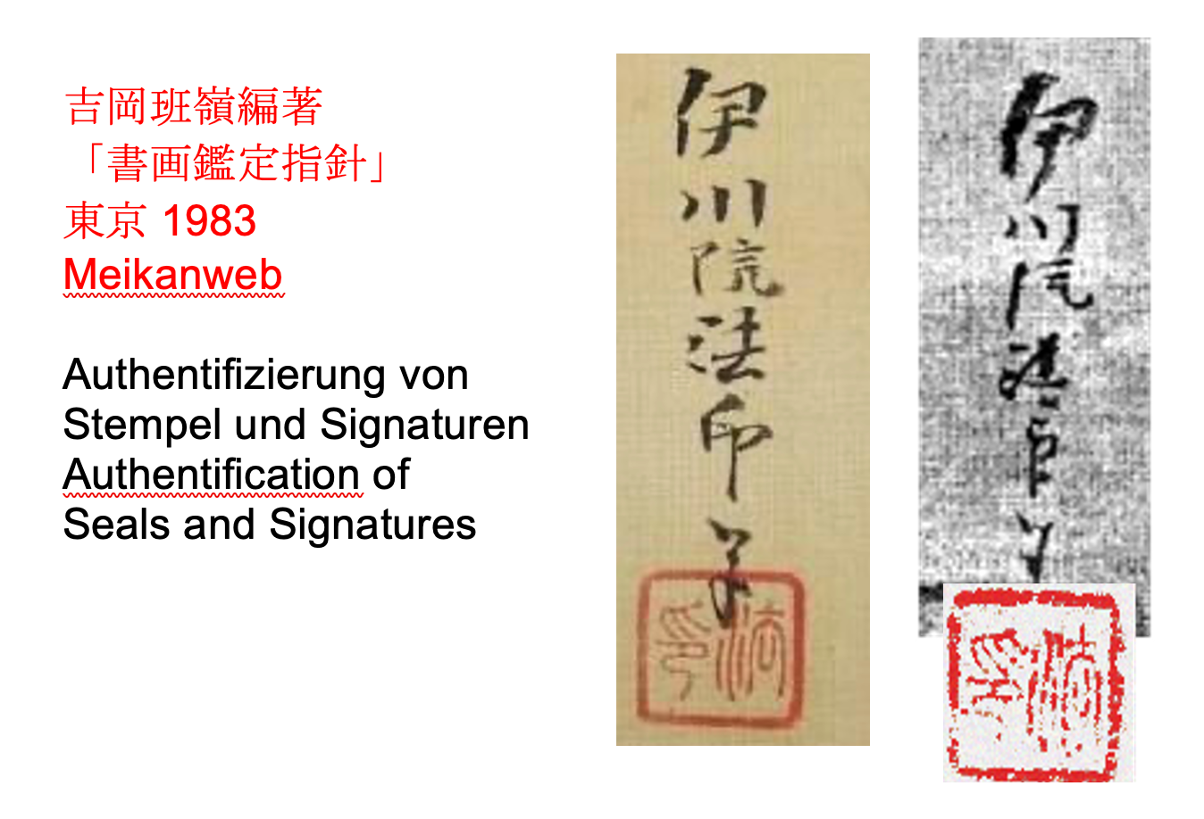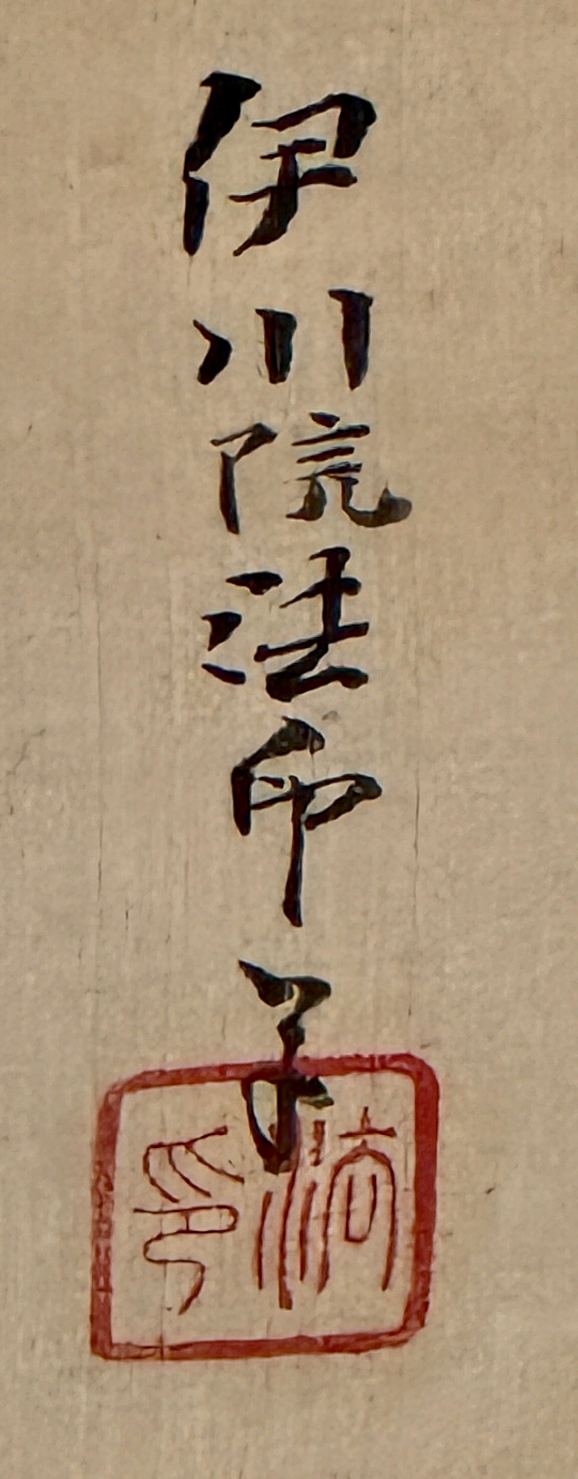 Isen’in ist einer der großen angesehenen Künstler der Kanō-Schule, die als Institution während fünfhundert Jahren in Japan die Welt der Malerei prägte. Alle Reichen und Mächtigen des Landes bestellten sich Kunstwerke bei Kanō-Meistern, um Residenzen angemessen zu schmücken. Die besten von ihnen waren Leiter der Kanō-Werkstätten in den verschiedenen Städten. Isen’in war der 7. Leiter des Kobikichō-Ateliers in Edo (Tokyo), und war offizieller Maler des Shogunats. Seine Werke sind im Metropolitan Museum New York, im Nationalmuseum Tokyo, in der Freer Gallery in Washington und in andern Asien Kunstsammlungen der Welt zu finden.